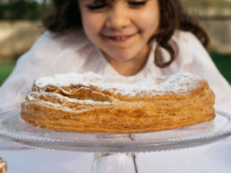Pour l’épiphanie, sa cousine la galette parisienne, avec sa crème aux amandes, fait son apparition aux côtés de notre fameuse galette des rois (la couronne briochée).
